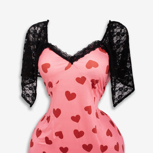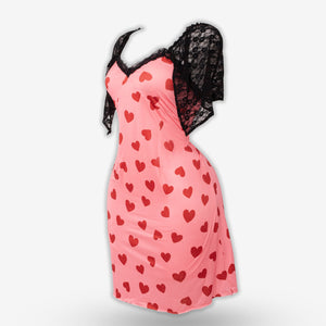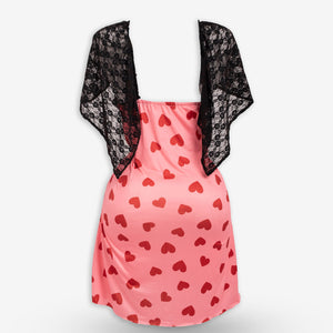 This two-piece set includes a cute cami top with delicate lace details and matching shorts, both featuring an adorable kitty print on a soft pink base. The playful design brings a fun, girly charm while keeping you comfortable all night long.